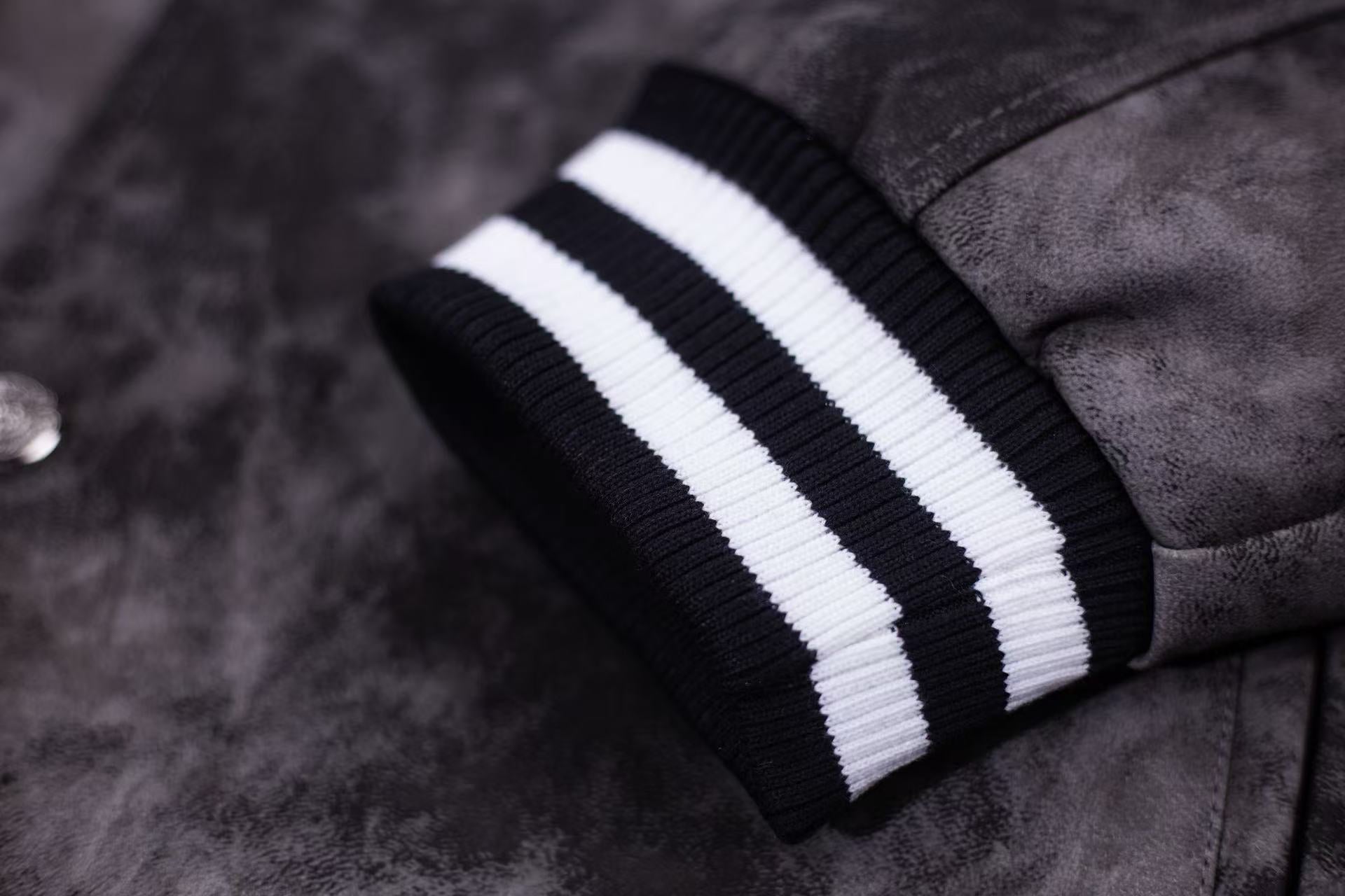 Chrome Hearts Fleur-de-lis Patch Varsity Jacket - Grey Tie-dye Outerwear A5588